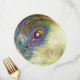Beautiful lavender purple and teal blue peacock wedding menus. This elegant teal blue peacock wedding menu is easily customised for your event with your choice of font style, colour and wording on the front and back. This is a printed graphic design with no real gems, jewels, etc. This 5.25 inch round menu design sits elegantly on the plate!