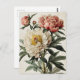 The vintage postcard features a captivating scene of lush peonies in full bloom, their vibrant hues capturing the essence of a bygone era. The delicate petals showcase a spectrum of pinks and whites, creating a harmonious blend that radiates timeless beauty. The background hints at a rustic garden setting, with hints of faded greens and subtle sepia tones, adding a nostalgic charm to the overall composition. The postcard's edges bear the gentle wear of time, a testament to its journey through the years.