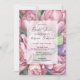 Watercolor vintage retro style! pink peony flowers theme bridal shower card featuring watercolor illustration of bouquet peonies with greenery. Elegant calligraphic handwriting, which is perfect for spring, summer or autumn weddings.