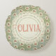 Vintage Personalised Rose Doily Green Damask Round Cushion