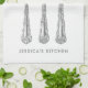 A vintage illustration of a fork, knife, and spoon, on a large personalised kitchen towel. Customise with the text of your choice.