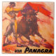 This design has been created using a post World War 2 poster that marks the promotion of traveling after the chaotic period. This warm colored poster design was created to attract people to Peru via Panagra Air. In this design, the vigorous bull is sprinting toward the bullfighter, who stands elegantly and confidently raising the red muleta. The action of the bull and the movement of the cloth are so fast and powerful that the peripheral of the images becomes blurry. PERU via PANAGRA can be found across the top and bottom of the design in bold red text. We have created a collection of products using this design called ‘Vintage Peru Via Panagra Travel Collection.’