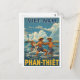 Capture the spirit of coastal Vietnam with this bold vintage travel poster style postcard featuring Phan Thiết. The design depicts muscular Vietnamese fishermen wearing traditional nón lá (conical hats), actively casting their fishing nets in the turquoise waters. In the distance, you can see a lighthouse and traditional sailboats, all rendered in striking, graphic color palettes typical of retro travel art. This postcard is perfect for celebrating Vietnamese culture, decorating with unique Southeast Asian art, or sending an energetic greeting from this beautiful beach town.
