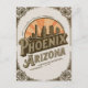 A vintage-style logo featuring the city name "PHOENIX" in bold, stylised lettering. The word "ARIZONA" is displayed in a smaller, complementary font beneath "PHOENIX." The logo is surrounded by decorative flourishes and a sunburst design, creating a classic and timeless aesthetic. The overall colour palette is warm and inviting, with shades of brown, orange, and cream.