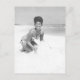 ---- Vintage black and white photo postcard ---- Young woman playing in the beach sand - Pensacola, Florida.