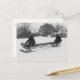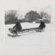 Postcard with vintage photo of two men on bobsled going down snowy hill on the front and placeholder text on the back for personalising.