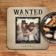 Retro, vintage 1800s wanted poster wedding coasters with distressed photo. Personalise it with your event details and a couple photograph.