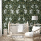 Adorn your walls with the timeless elegance of this vintage wallpaper, inspired by the iconic designs of William Morris. The intricate pattern features majestic white pimpernel (irises) and delicate yellow blossoms intertwined with lush green leaves and vines, set against a deep, rich black background. This exquisite design brings a touch of classic sophistication and natural beauty to any room. The harmonious blend of ivory, pale yellow, olive green, and dark green hues makes this wallpaper a perfect choice for creating a serene and elegant atmosphere in your home.