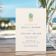 Understated and elegant, our Vintage Pineapple bridal shower invitation features a vibrant green and golden yellow pineapple illustration at the top with your bridal shower details in traditional block and script lettering. Dark, smoky blue grey printing on a warm off white background provides a formal, elegant finish. Cards reverse to solid smoky navy blue. Featuring the pineapple, the beloved symbol of both hospitality and island style, this invitation is perfect for southern, tropical, Hawaii or Caribbean themed bridal showers. We love this style with the Traditional Laid paper for a truly upscale look and feel.