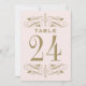 Vintage style wedding table number cards feature decorative swirls and flourishes on both sides of the card. Pale pastel ballet pink and antique gold colour scheme. Personalise each table number card that you need and add each to your cart individually.
