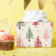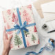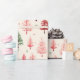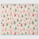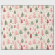Beautiful watercolour vintage Christmas tree pattern is shades of pink and green. Trendy pink Christmas gift wrapping paper.