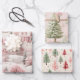 Beautiful watercolour vintage Christmas pattern is shades of pink and green mix . Trendy pink Christmas gift wrapping paper.