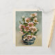 Customisable Vintage postcard with pink flowers in blue vase illustration.