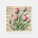 Vintage Pink & Green Tulips Sheet Music Decoupage Napkin