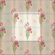 Elegant classic vertical pink bearded iris with pastel green decorative bands on light peach background.