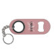 Elegant vintage pink keychain bottle opener with a white script monogram and a black typography name. Personalise with your name and monogram.