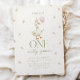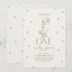 This "ONE Silly Goose" birthday invitation design features a cute goose with a balloon, and a whimsical vintage stripes background with cute pink flowers.
