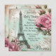 Pretty pale pink roses, pearls and lace, teal blue and pink Eiffel Tower Paris baby shower invitation. This elegant teal blue and pink Paris baby shower invitation is easily customised for your event.