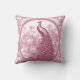 Vintage illustration of pink peacock and decorative background throw pillow.