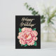 Vintage Pink Peony Flower Black Holiday Postcard