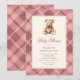 Vintage Pink Plaid Teddy Bear Baby Shower Invitation