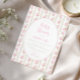 Designed with soft pink roses and natural green accents, this floral baby shower invitation brings a touch of vintage charm to your celebration. The white background keeps the design fresh, airy, and easy to personalize.