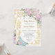 Personalise this vintage floral princess baby shower invitation with your own wording easily and quickly, simply press the customise it button to further re-arrange and format the style and placement of the text. This elegant invitation features vintage French roses, antique gold frame and a princess / Cinderella glass slipper. Matching items available in store! (c) The Happy Cat Studio.