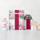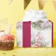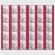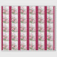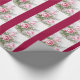 This wrapping paper features a tiled design of pink vintage roses with green leaves. The dark pink stripes can be customised if desired.