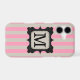 Vintage Pink Stripes Pattern Black Custom Monogram