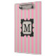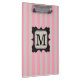 Vintage Pink Stripes Pattern Black Custom Monogram Clipboard