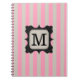 Vintage Pink Stripes Pattern Black Custom Monogram Notebook