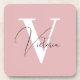 Vintage pink stylish chic custom monogram coaster