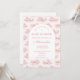 Celebrate a timeless and romantic baby shower with this elegant pink toile design, featuring delicate vintage countryside illustrations in soft blush tones. The refined arch layout creates a beautiful focal point for your event details, blending classic European charm with a modern, feminine aesthetic. Perfect for a chic, storybook-inspired celebration, this design feels both graceful and effortlessly sophisticated—ideal for creating a memorable and stylish gathering.