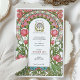 This enchanting Art Nouveau wedding invitation highlights an intricate floral design featuring vibrant pink tulips, delicate cherry blossoms, and lush green foliage. The border is adorned with flowing vines and organic curves, characteristic of the Art Nouveau style, creating a sophisticated and romantic aesthetic. Soft pastel pinks, greens, and hints of blue add a harmonious touch to this timeless design. Perfect for garden-themed, vintage, or nature-inspired weddings, this customisable invitation combines elegance with botanical charm, leaving a lasting impression on your guests.