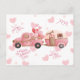 Vintage Pink Valentine's Day Truck and Hearts Postcard