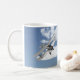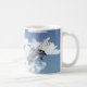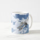 Vintage aviation art design of a historical biplane flying through the cloudy sky.