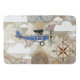 Vintage aviator plane bath mat with a vintage style map background, dotted line clouds, and a compass rose.