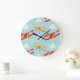 Vintage Planes Clouds Background Pattern Large Clock