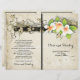 Vintage plumeria or frangipani and ivy custom beige folded wedding ceremony and party program, featuring beautiful white and orange plumerias with green leaves and ivy on beige grunge background. This modern approach to a vintage design is a completely customisable template and is part of a wedding set or collection perfect for a Hawaiian wedding. Beige, taupe, white, green, orange, black. You will have to fold it in the centre. Choose only this type of paper-value as it folds well.