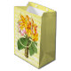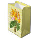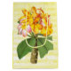 Colourful vintage plumeria floral illustration on yellow watercolor sheet music background