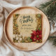 Send warm holiday wishes with this vintage-inspired Christmas design featuring bold red and white poinsettias framed by ornate golden scrolls. The rich colours and classic detailing create an elegant yet rustic feel, perfect for adding timeless charm to your holiday season.