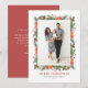 Merry Christmas! Send your holiday wishes and greetings to family and friends with this customizable floral Christmas photo card. It features watercolor frame of pinecones, pine needles, hollies, berries and poinsettia. Personalize by adding names, message and a vertical photo. This vintage floral Christmas photo flat card is available in other cardstock.