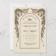 Vintage Pomegranate motif wedding invitation in the Art Nouveau style with a romantic arch.