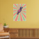 add a vibrant focal point to any room with this retro candy pop art poster. featuring a hand-drawn purple bonbon against a nostalgic pink and teal sunburst ray background, this high-quality print captures a charming kitsch aesthetic. the distressed texture and mid-century illustration style make it an ideal piece of wall art for kitchens, bedrooms, or offices looking for a bold burst of vintage color and nostalgic graphic design.