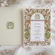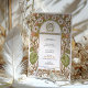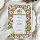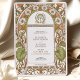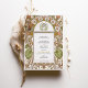 This Art Nouveau-inspired wedding invitation features intricate floral illustrations in a harmonious palette of peach, green, and soft blue hues. The border is adorned with elegant flowers, including stylised poppies and lush foliage, intertwined with organic curves and ornate details characteristic of the Art Nouveau art movement. The centerpiece showcases customisable wedding details framed by the exquisite floral arrangements. Perfect for vintage-themed, nature-inspired, or bohemian weddings, this design combines timeless beauty with botanical charm, creating an unforgettable keepsake for your special day.