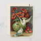 Customisable Vintage postcard with poppies & birds in a vase illustration.