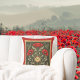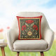 This elegant floral throw pillow features beautiful vintage red poppies with art nouveau style greenery and leaves. Decorate your living room, bedroom, or sitting room with retro floral flair. Your monogram initial appears in a gold circle bordered in greenand red. Make sure to type your initial in the Personalise box.