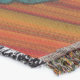 A quality printed throw has its advantages. This is a much finer weave throw than its loopier cousins, and though lighter, it is worth the investment for custom room accessorizing. The back is much prettier than the typical brown, and the fringe on the long sides very vivid, the selvage nicely done. Before photographing, I washed the throw in cold water, delicate, with a thicker woven throw the same size. On tumble dry low, this throw was dry in half the time as the other. This is a very practical quality if you use throws for furniture covers or to wrap up in frequently. The sleekness of the fabric makes it a great layer for accenting or protecting without the feeling of sitting on too much stuff. Perfect for napping or when you feel a light chill coming on. The color printing is beautiful and on this fabric, matched the design and color of my Photoshop image. This is an advantage for blending room fabrics and colors. The fringe on the short sides prints the colors from the design image and therefore varies from the side fringe. I streaked a white fractal line through the plaid pattern to give the illusion of weaving. This printed as crisp as an illusory thread, and put some white in the short side fringe, showing another advantage of print vs loomed- for artistic purposes, line lines, detail, and color integrity can be planned and preserved. My loomed throws have color limitations and more of a needlepoint texture. Print throws reproduce an exact image. The throw felt a little stiff straight out of the package, but this went away in the first delicate wash. Of course I searched the wash water for ink or bleeding and there was none.