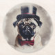 Vintage Posh Pug Portrait Round Paper Coaster