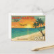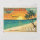 Illustrated postcard "Saint-Martin SXM 97150" in a retro travel style poster, with plane approaching, turquoise beach, palm tree and sunset. A unique souvenir of the Caribbean to send, collect or offer. Perfect for travelers, aviation enthusiasts and Saint-Martin lovers. High quality printing, premium paper.